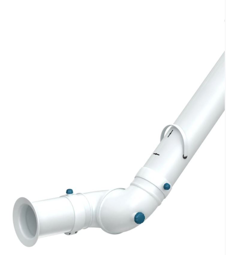 Material: Rohre aus eloxiertem Aluminium in weißer Elektrotauchlackierung / Gelenke aus leitfähigem Kunststoff (PP) / Rohrverbinder aus leitfähigem EPDM-Kautschuk Minihood in PP Kunststoff.